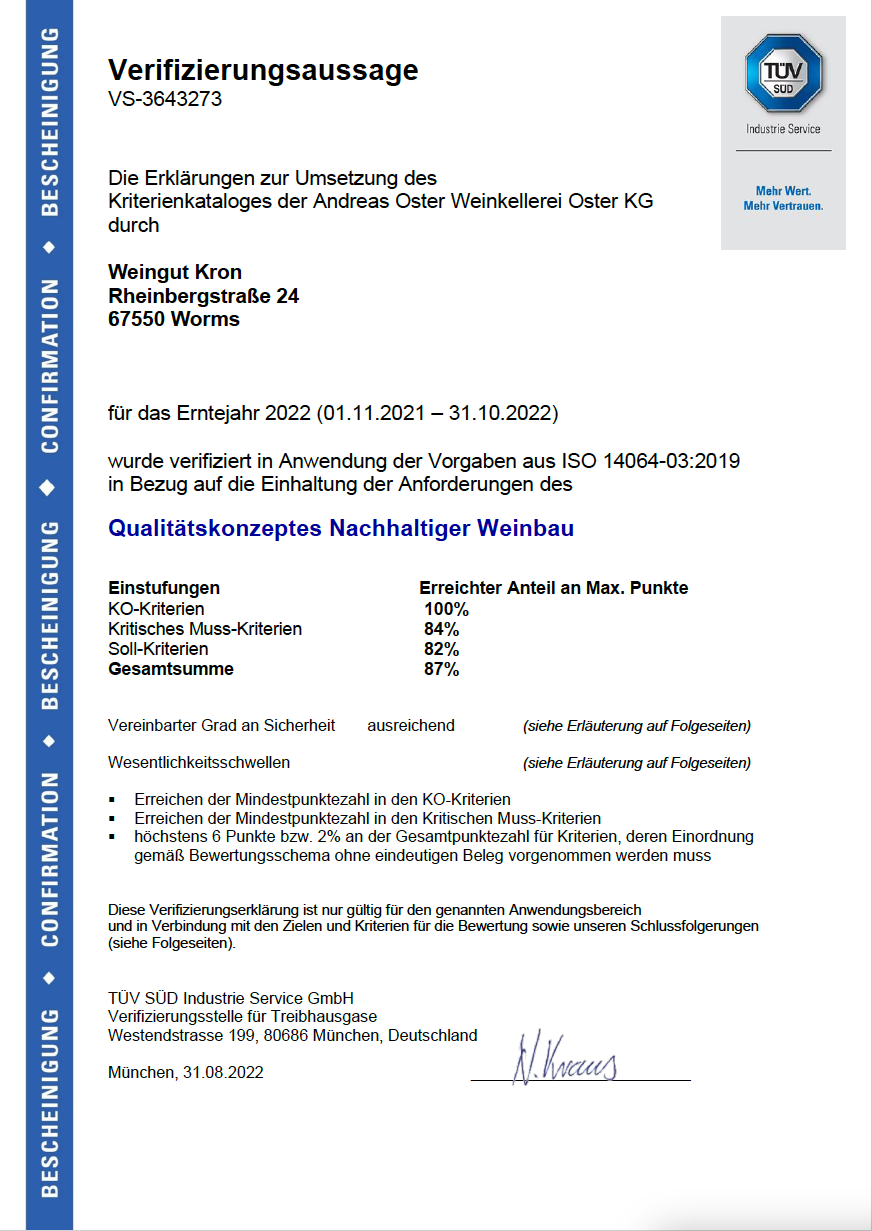 Dieser Wein ist durch und durch nachhaltig – das ist unabhängig durch den TÜV SÜD bestätigt!